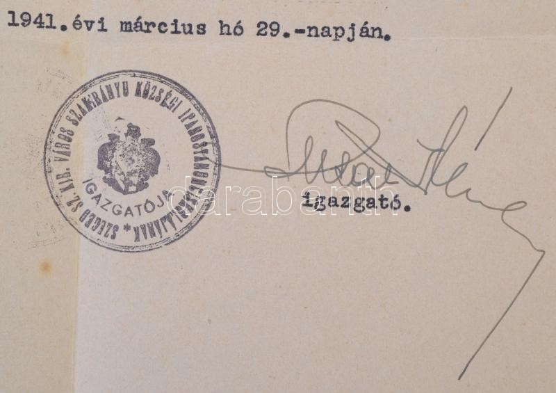 1941 Bozó Gyula képeslap tervező részére Szegeden kiállított működési ...