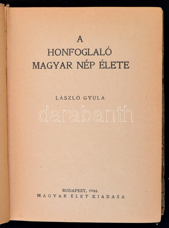 László Gyula: A honfoglaló magyar nép élete. Bp., 1944, Magyar Élet (Népkönyvtár 4.). Kiadói kissé kopottas félvászon kötésben, de egyébként jó állapotban.
