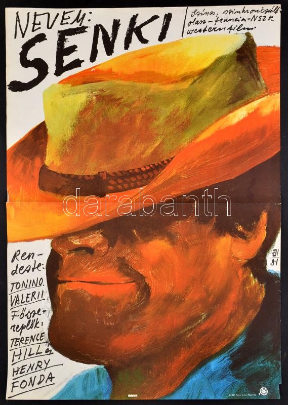 1981 Balogh István (1924-): Nevem: Senki, olasz-francia-NSZK film plakát, főszerepben: Terence Hill, Henry Fonda, ofszet, szélén apró szakadásokkal, 60x42 cm / My Name is Nobody movie poster, ofszet, with small tears, 60x42 cm