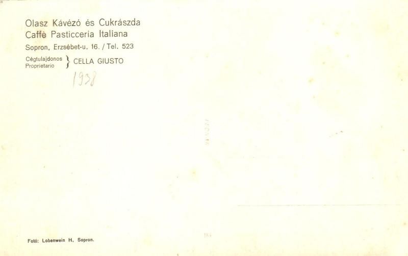 Sopron, Olasz Kávézó és Cukrászda, belső. Erzsébet utca 16. Cella Gius... https://www.darabanth.com/hu/29-Nagyaukcio/29.1/Kepeslapok/Magyarorszag~11796/Sopron-Olasz-Kavezo-es-Cukraszda-belso-Erzsebet-utca-16-Cella-Giusto-cegtulajdonos-Foto~II1770139