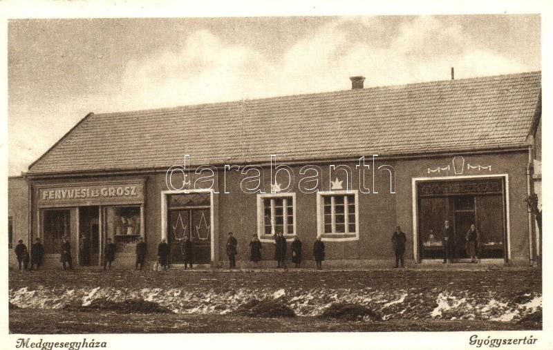 Leírás: Medgyesegyháza, Gyógyszertár, Fenyvesi és Grosz üzlete. Sudák András kiadása (EK)