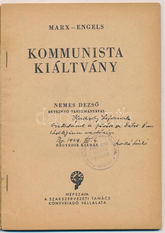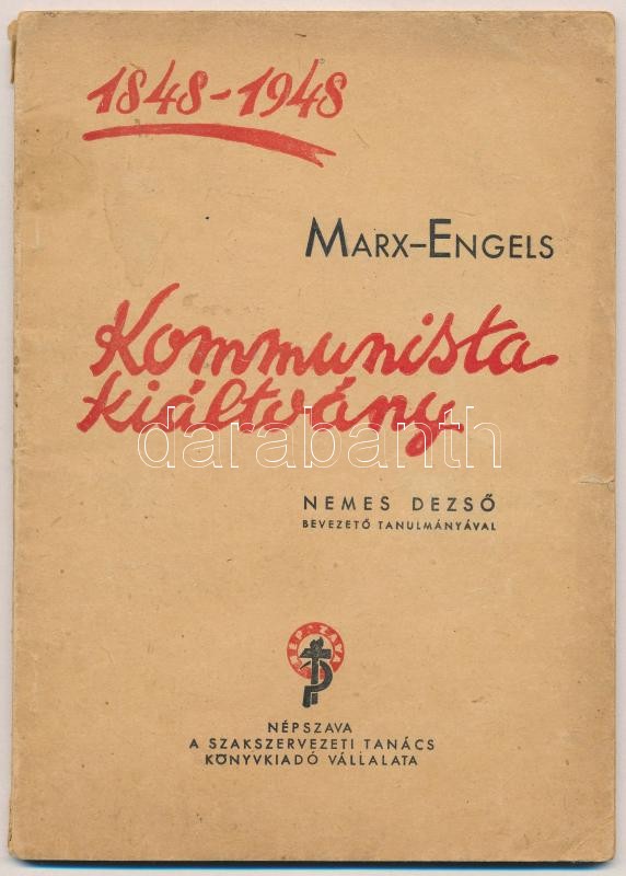 1948 Marx-Engels: Kommunista kiáltvány, nemes Dezső bevezető tanulmány... https://www.darabanth.com/hu/294-Gyorsarveres/294.0/Festmeny-mutargy-papirregiseg-egyeb/Nyomtatvanyok~200027/1948-Marx-Engels-Kommunista-kialtvany-nemes-Dezso-bevezeto-tanulmanyaval-Nepszava-Szakszer~II1559708