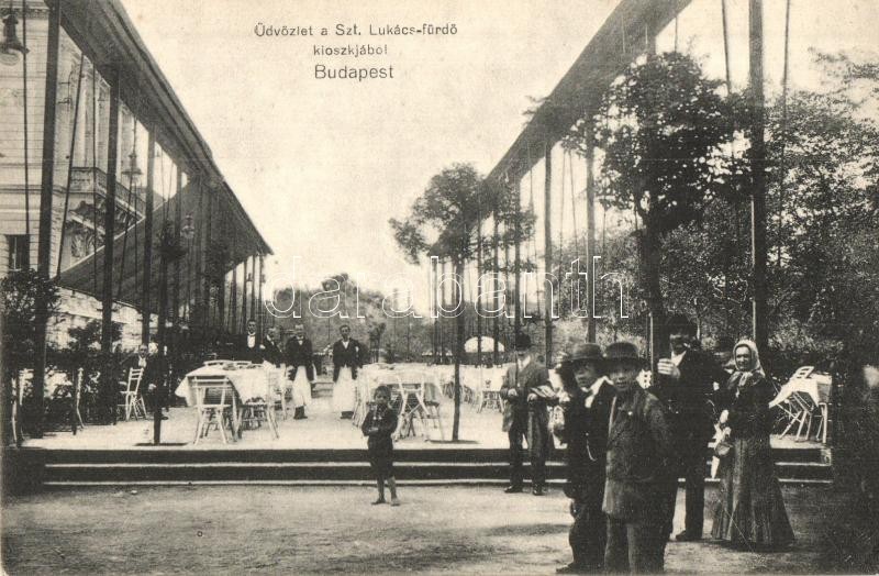 Leírás: Budapest II. Szent Lukács fürdő, kioszk, terasz (EK)