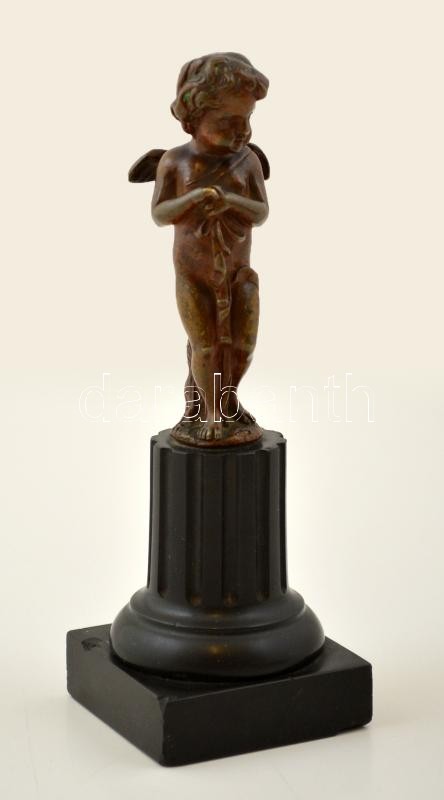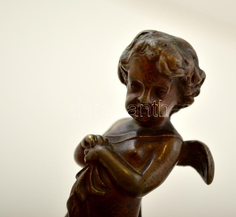Puttó figura, spiáter, márvány talpon, jelzés nélkül, m:16 cm