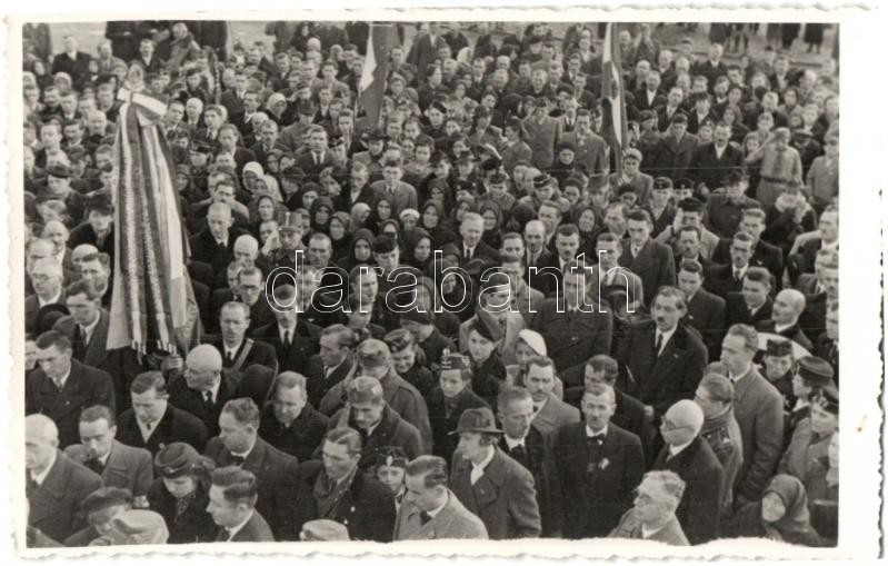 1940 Nagyszalonta, Salonta; Országzászló avatás, tömeg a Himnusz hallgatása közben / Hungarian Flag inauguration, listening to the National Anthem. Zsák Jenő Jászberényi photo