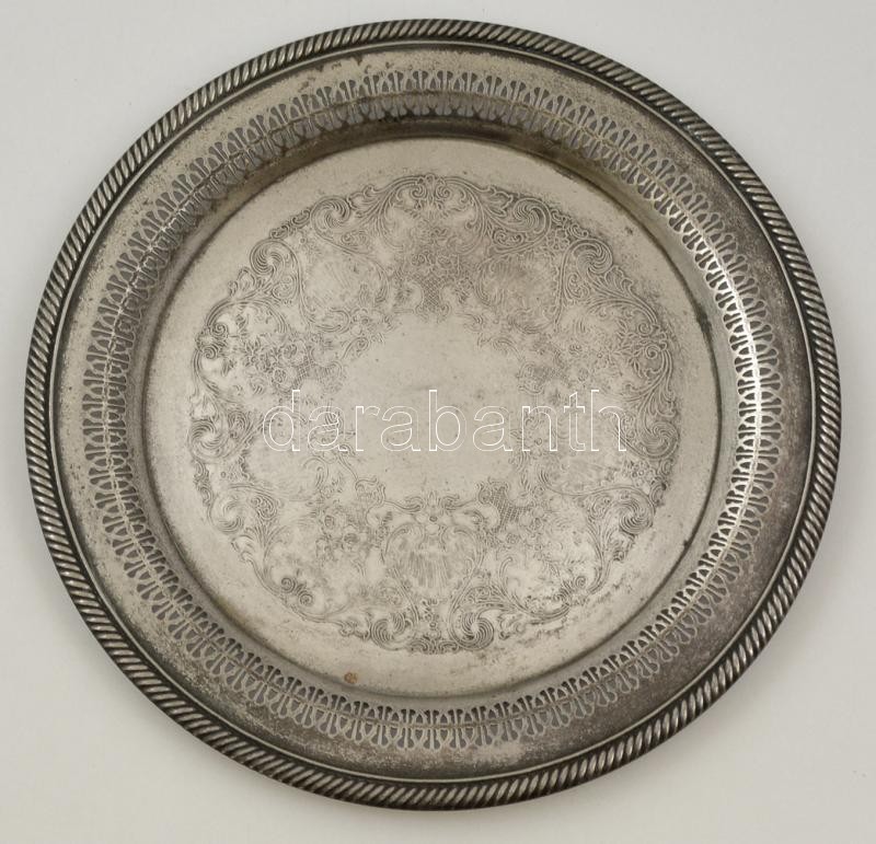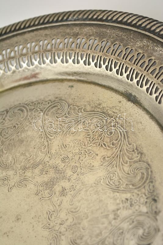 Leírás: WM Rogers ezüstözött, áttört díszítésű tálca, jelzett, d: 31 cm