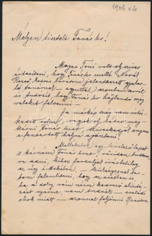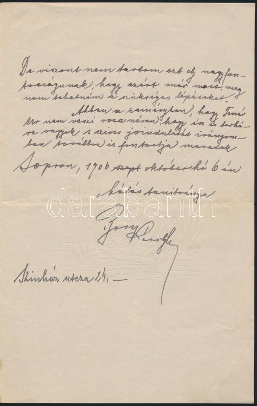 Leírás: Bors Károly (1880 - 1973) festő, iparművész saját kézzel írt levele