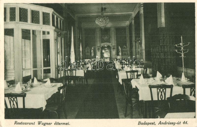 Budapest VI. Wágner éttermei, belső. Andrássy út 44. (EK) https://www.darabanth.com/hu/298-Gyorsarveres/298.0/Kepeslapok/Magyarorszag~200006/Budapest-VI-Wagner-ettermei-belso-Andrassy-ut-44-EK~II1594926