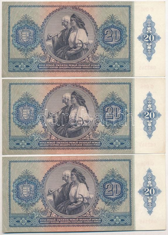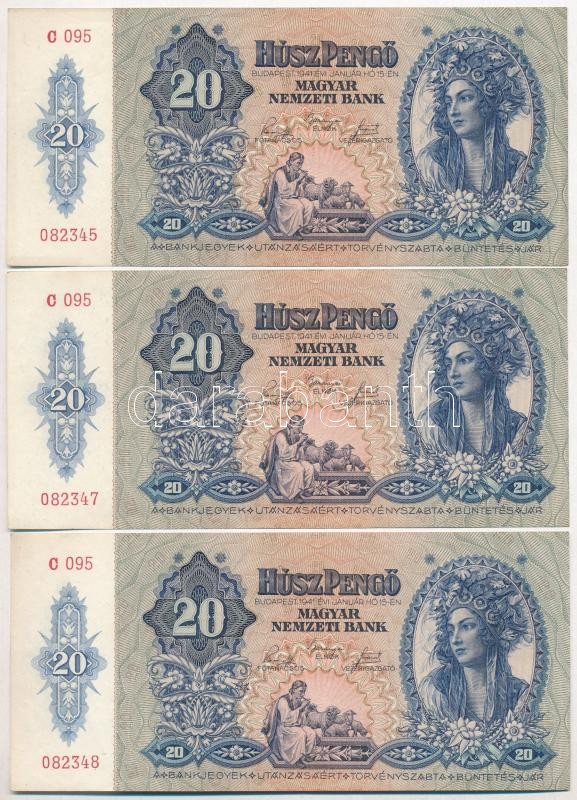 1941. 20P (3x) sorszámkövető pár és egyugrásos sorszámkövető T:I,I- https://www.darabanth.com/hu/298-Gyorsarveres/298.0/Numizmatika/Magyar-bankjegyek~300006/1941-20P-3x-sorszamkoveto-par-es-egyugrasos-sorszamkoveto-TI-I-~II1595159