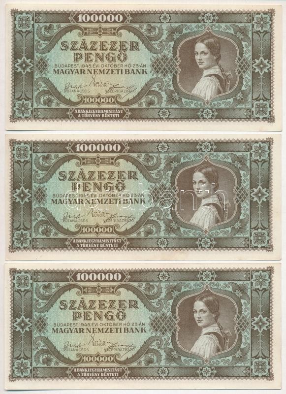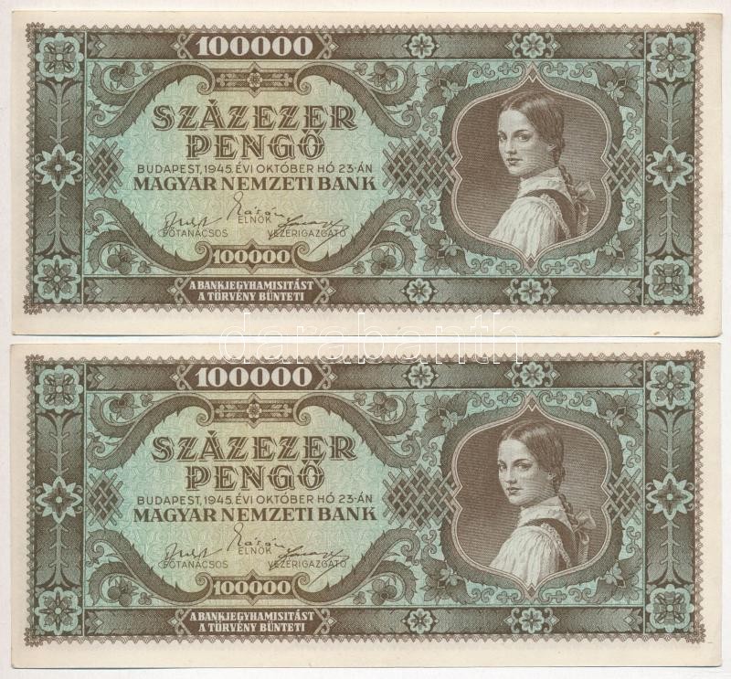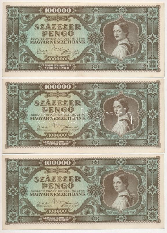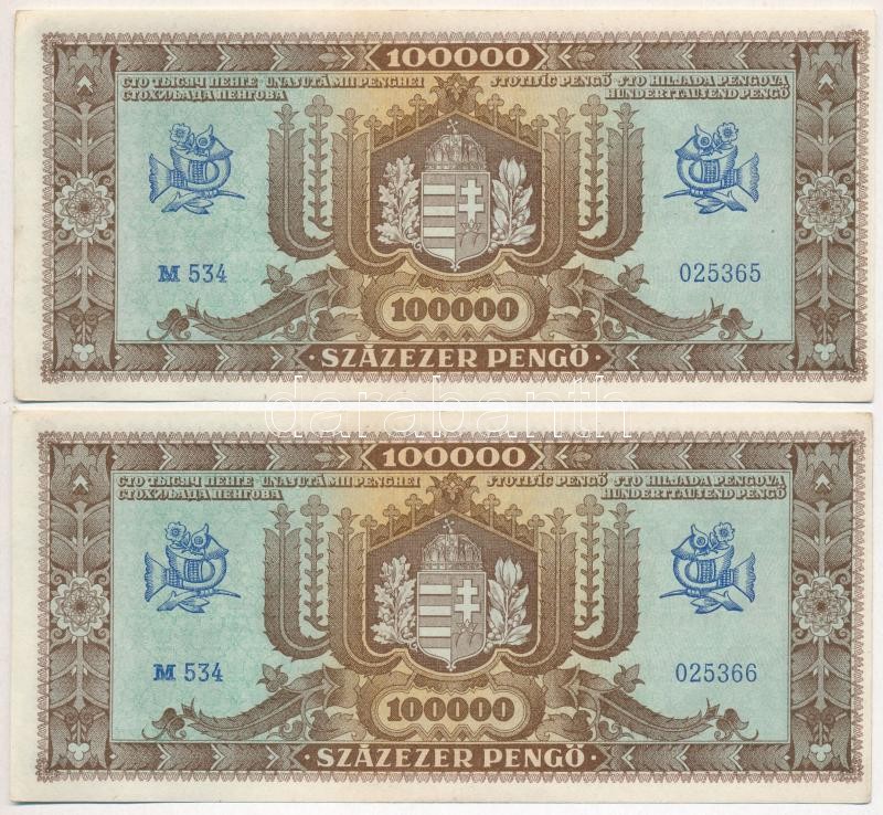 1945. 100.000P (8x) sorszámkövetők (5+3) T:I,II