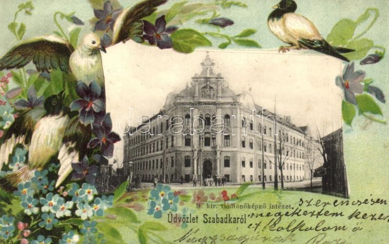 1903 Szabadka, Subotica; M. kir. tanítónőképző intézet. Szecessziós litho keret madarakkal / teachers training institute. Art Nouveau litho frame with birds