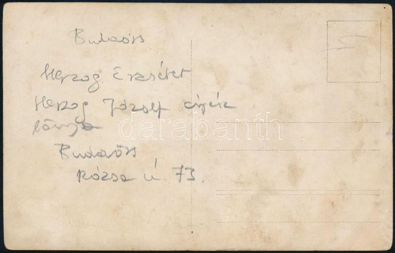 Budaörsi sváb népviselet, Herzog Erzsébet, Herzog József cipész lánya (Rózsa u. 73.), helytörténeti anyag, fotólap, feliratozva, 14x9 cm