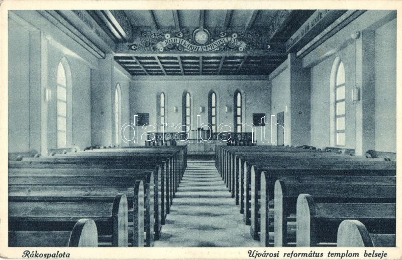 Budapest XV. Rákospalota, Újvárosi református templom, belső https://www.darabanth.com/hu/301-Gyorsarveres/301.0/Kepeslapok/Magyarorszag~100004/Budapest-XV-Rakospalota-Ujvarosi-reformatus-templom-belso~II1617508