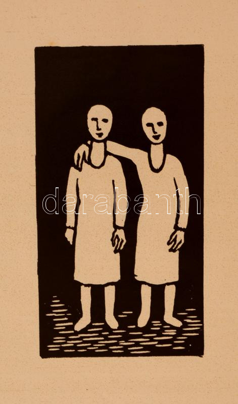 Iván Szilárd (1912-1988): Barátok. Linó, papír, jelzés nélkül, 16×8 cm