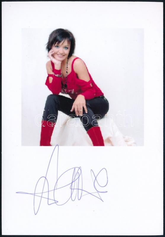 Leírás: Szandi (Pintácsi Alexandra, 1976-) énekesnő aláírása az őt ábrázoló képen