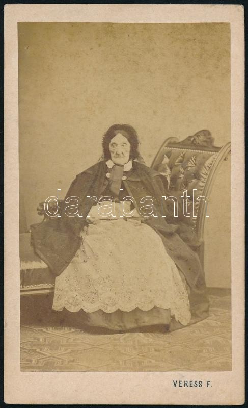 Leírás: 1861 Székelyné Ungár Anna (1790-1862) kolozsvári színésznő időskori fotója, Veress Ferenc műterméből, 10,5x6 cm