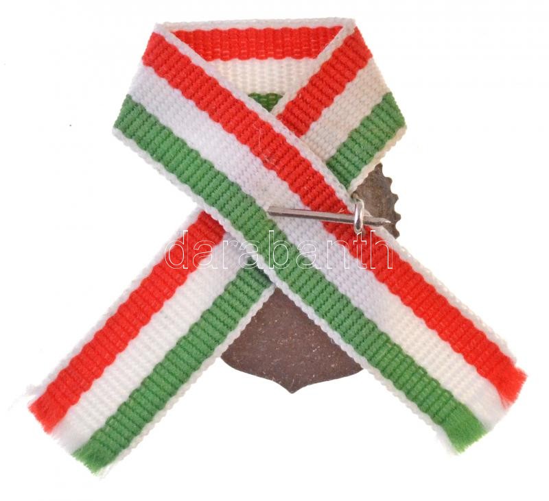 Leírás: DN "A magyarok istenére esküszünk" a magyar címert és a turulmadarat ábrázoló zománcozott fém jelvény nemzetiszínű szalaggal (17x23mm) T:1-