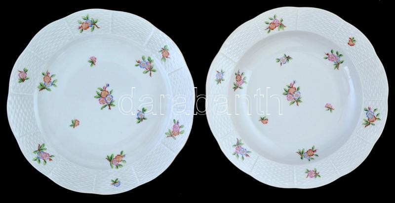 Leírás: Herendi Eton mintás porcelán mély- és lapostányér, kézzel festett, jelzett, hibátlan, d: 24 cm