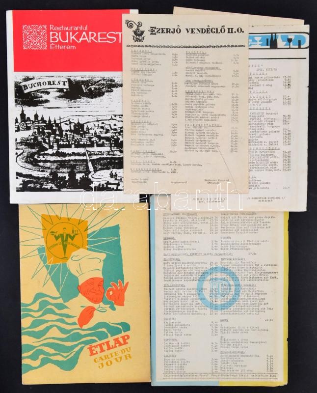 1971-1974 6 db különböző étlap, többek közt: Ezerjó vendéglő, Centrál ...