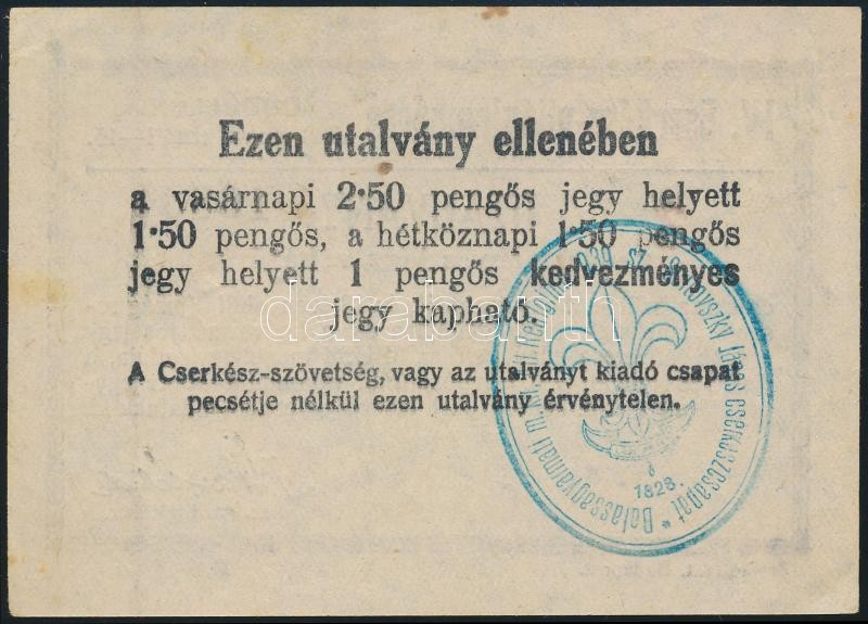 Leírás: 1933 Gödöllő Jamboree utalvány kedvezményes jegy vásárlására / 1933 Gödöllő Jamboree voucher for discounted train ticket