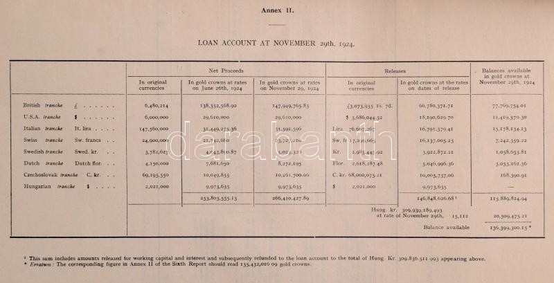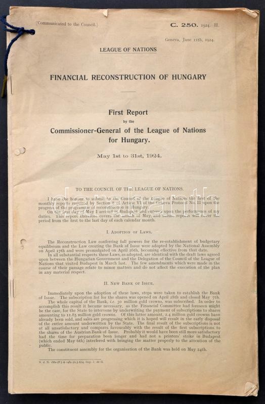 1924 A Népszövetség jelentése Magyarország pénzügyi rekonstrukciójáról. A jelentést Jeremiah Smith készítette, amikor Magyarországot felvették a Népszövetségbe. A 25 jelentés kompletten. / 1924 League of Nations. Financial reconstruction of Hungary. 25 reports made by Jeremiah Smith when Hungary was admitted to the LN.