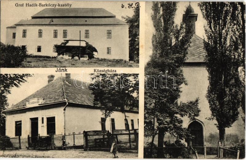 Leírás: 1930 Jánk (Jánkmajtis), Községháza, Római katolikus templom, Gróf Hadik Barkóczy kastély. Beck Ödön kiadása