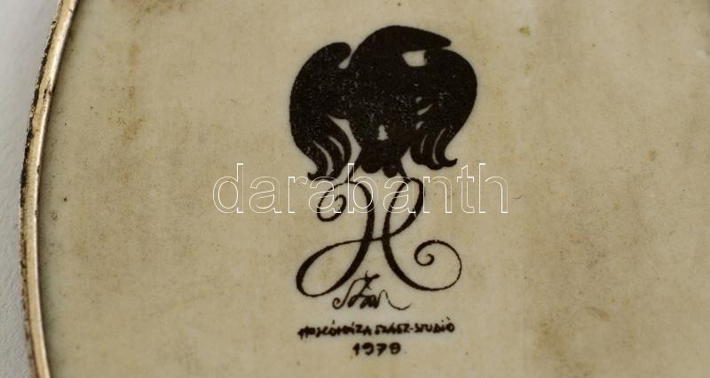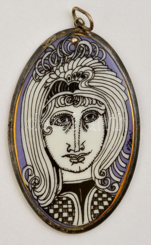 Leírás: Hollóházi Szász Endre által tervezett mintával díszített porcelán medál, matricás, jelzett, 6x4 cm