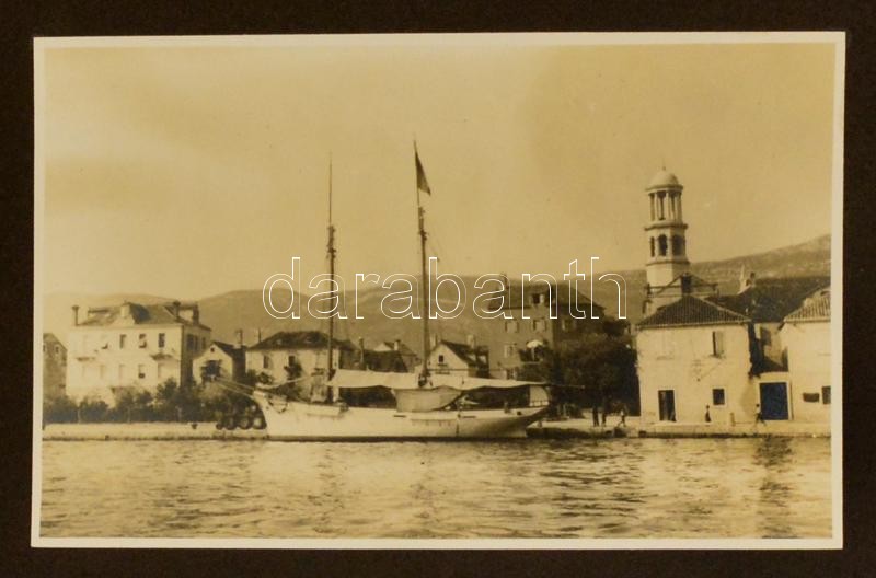 cca 1910 Abbazia, 23 db fotó albumba ragasztva, köztük hajók, kikötői képek, képméret: 8,5x13,5 cm, album mérete: 16x23 cm / Abbazia, 23 photos in album, with ships, 8,5x13,5 cm