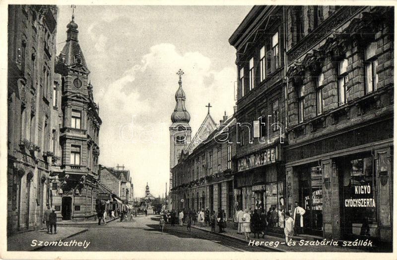Szombathely, Herceg- és Szabária szálloda, Kemény József üzlete, Kígyó... https://www.darabanth.com/hu/314-Gyorsarveres/314.0/Kepeslapok/Magyarorszag~400005/Szombathely-Herceg-es-Szabaria-szalloda-Kemeny-Jozsef-uzlete-Kigyo-gyogyszertar~II1721830