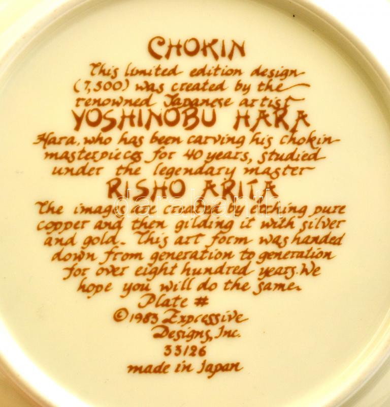 Leírás: Chokin limitált kiadású dísz tálka, jelzett, hibátlan, d: 16 cm