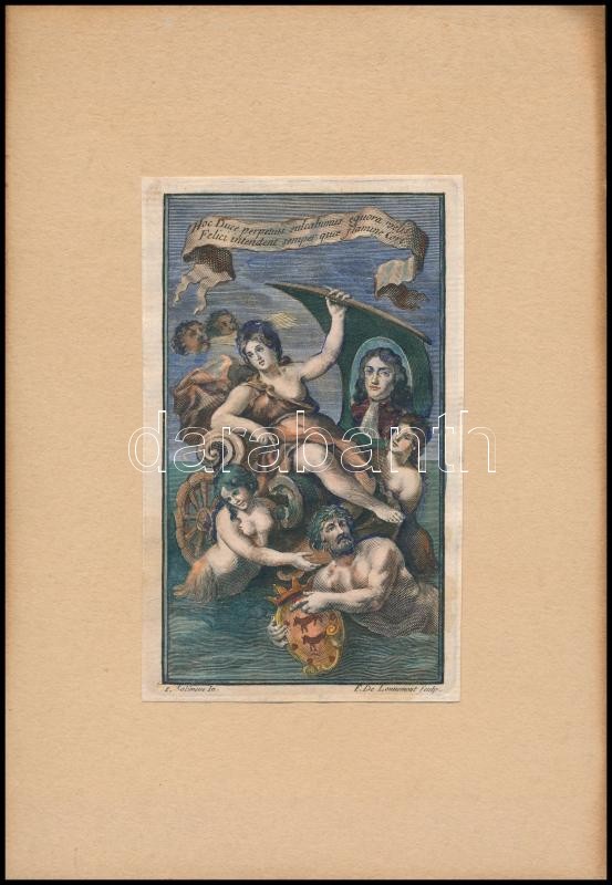 Leírás: cca 1700-1800 Louvemont, François de (?-?): Francesco Solimena után: A tengeren, színezett rézmetszet, kartonra ragasztva, 13×8 cm