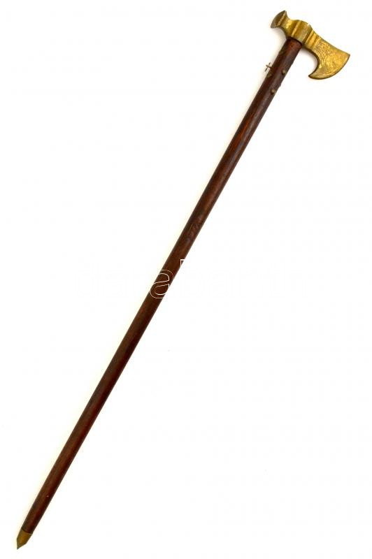 Leírás: Vésett réz fejes fokos. / Copper headed axe 88 cm