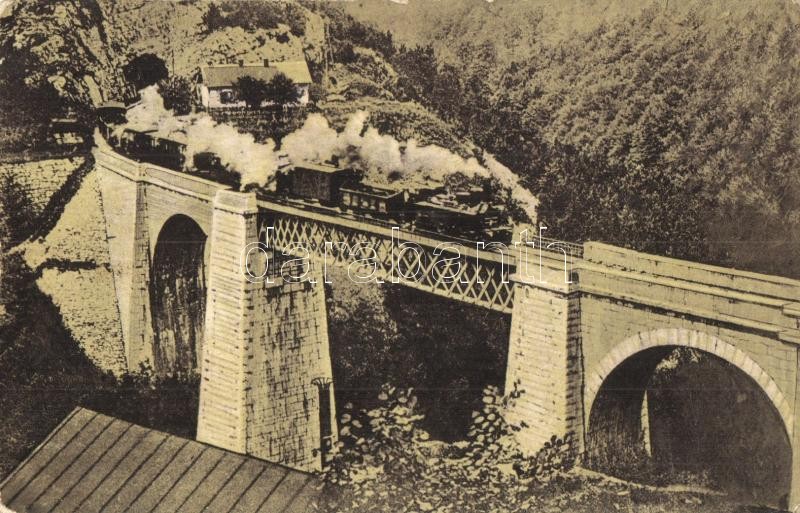 Leírás: Oravica-Anina, Oravita-Anina; Vasúti hegyipálya gőzmozdonnyal. Scheitzner Ignátz kiadása / mountain railway bridge with locomotive (Rb)