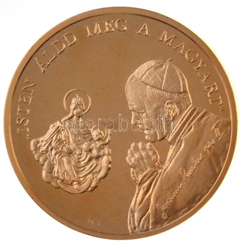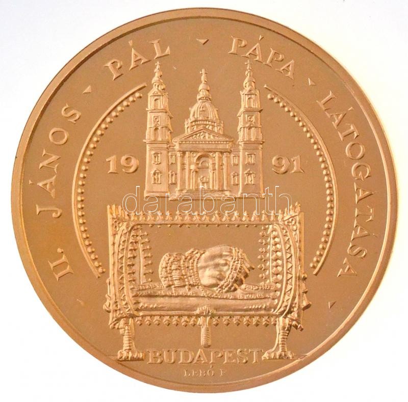 Bognár György (1944-) / Lebó Ferenc (1960-) 1991. "II. János Pál pápa látogatása - Budapest" aranyozott fém emlékérem dísztokban, tanúsítvánnyal (65mm) T:PP
