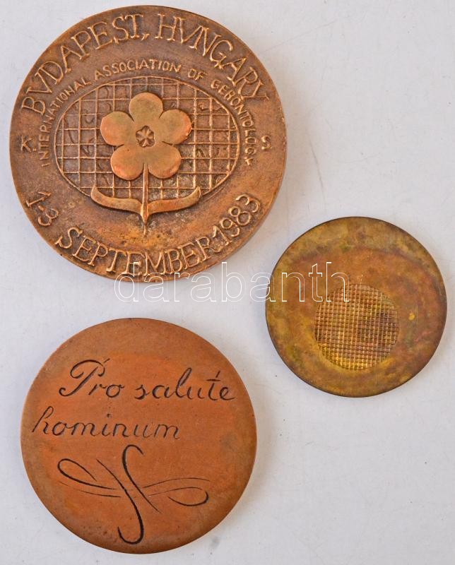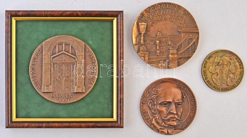 Leírás: 4db orvostudomány témájú Br plakett, közte "Semmelweis Ignác", "Magyar Osztrák Urológus Társaság Űlése győr 1984", egyik plakett keretben T:2