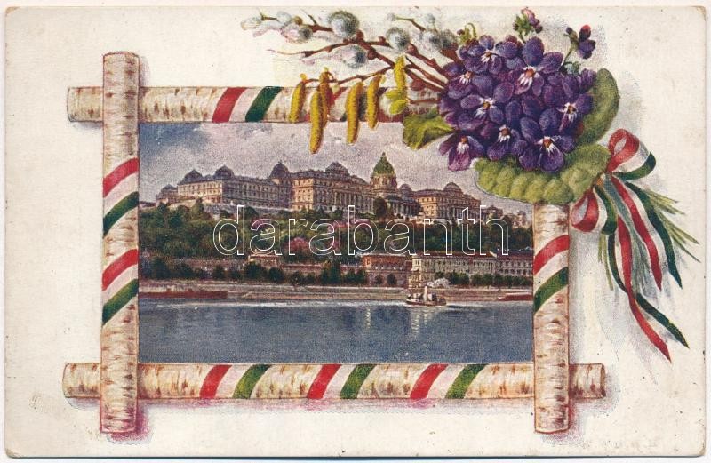 Budapest I. Királyi vár. Magyar zászlós, virágos keret. Hátoldalon szá... https://www.darabanth.com/hu/328-Gyorsarveres/328.0/Kepeslapok/Magyarorszag~2000005/Budapest-I-Kiralyi-var-Magyar-zaszlos-viragos-keret-Hatoldalon-szaritott-elo-virag-E~II1828171