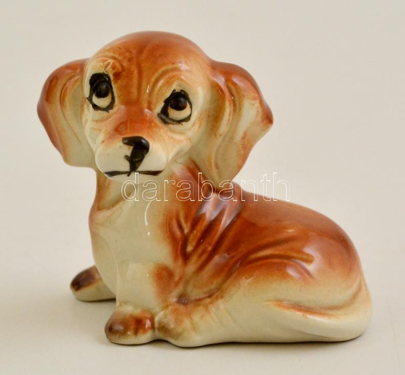 Leírás: Buksi, porcelán kutyafigura, kézzel festett, jelzés nélkül, apró kopásnyomokkal, m: 6,5 cm