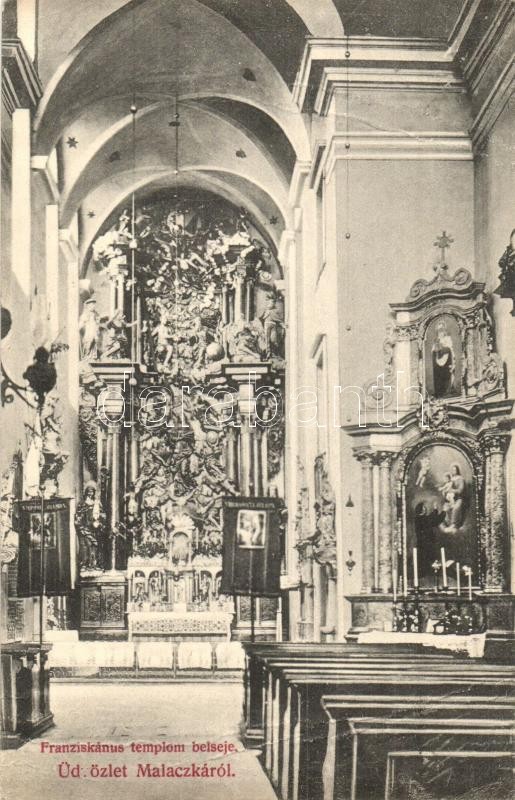 Malacka, Malacky, Malatzka; Franziskánus templom belső, oltár / church...