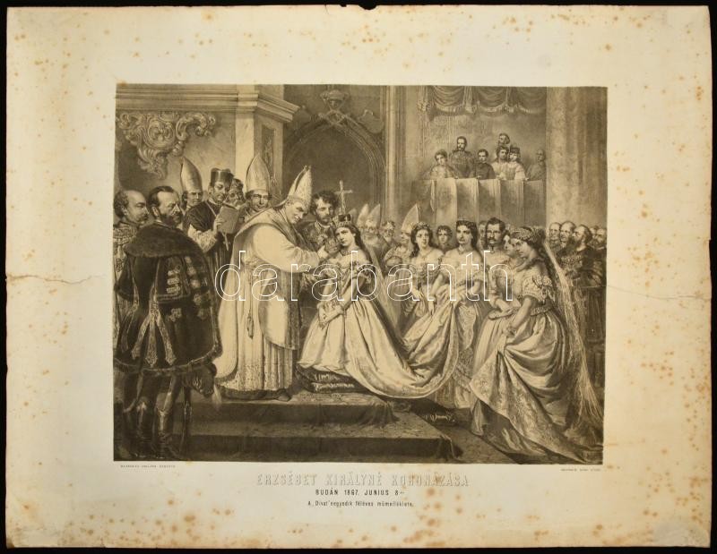1867 Erzsébet királyné koronázása, acélmetszet, Kollárz Ferenc - Deuts...