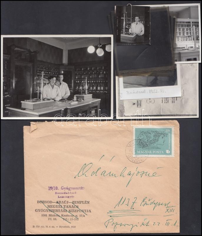 Leírás: cca 1953 Borsodnádasd, gyógyszertár, fotók és negatívok, egy részük feliratozva, különböző méretben, összesen 12 db