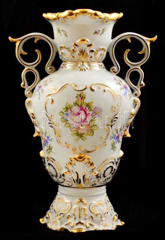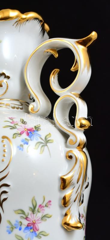Hollóházi barokk váza, kézzel festett, jelzett, hibátlan, m: 29,5 cm