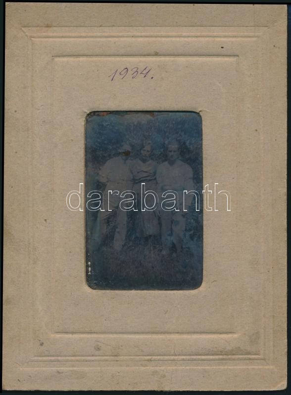 1934 Háromfős társaságot ábrázoló ferrotípia, papír keretben, 6×4 cm https://www.darabanth.com/hu/336-Gyorsarveres/336.0/Mutargy-papirregiseg-egyeb/Foto~500020/1934-Haromfos-tarsasagot-abrazolo-ferrotipia-papir-keretben-6C3974-cm~II1886396