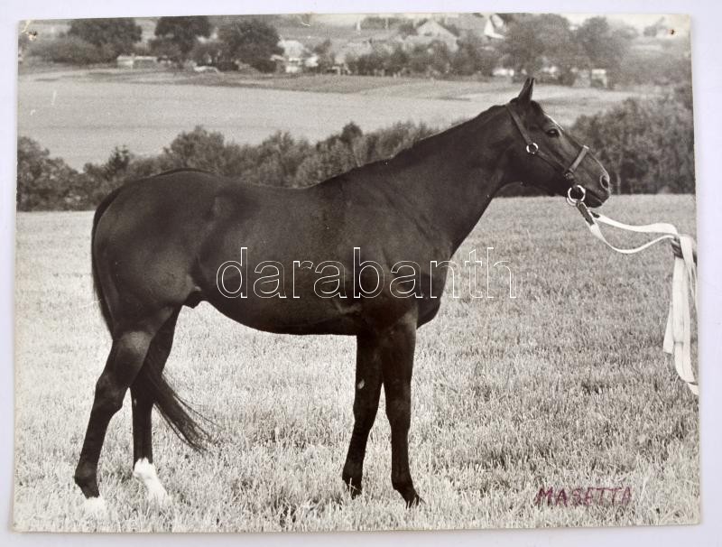 Leírás: cca 1977 Masetta, dióspusztai galoppló, kartonra ragasztott fotó, 30×40 cm