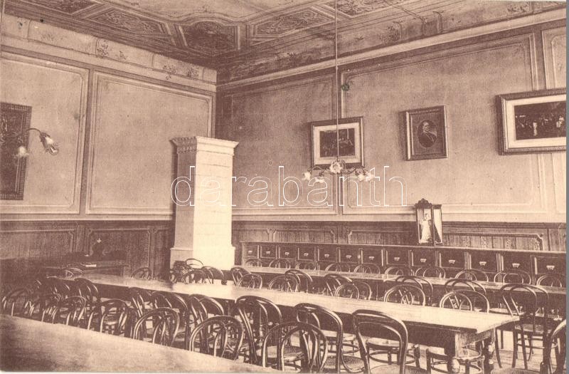 Leírás: 1913 Lőcse, Levoca; Püspöki leánynevelő intézet, nappali terem, belső / girl school interior