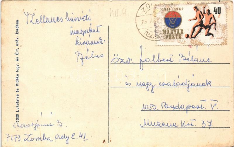 Lukafalva, Dózsa György, Gheorghe Doja, Lucafalau; református templom, utca, fogyasztási szövetkezet üzlete és saját kiadása / Calvinist church, streets, cooperative shop