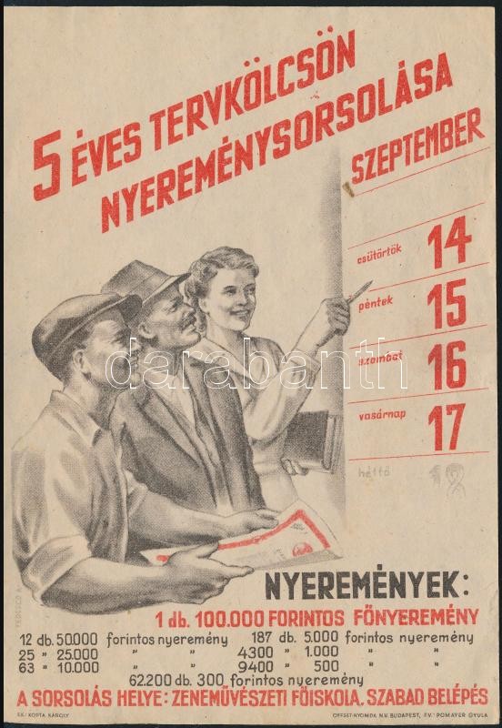 1955 Bp., 5 éves tervkölcsön nyereménysorsolása, kisplakát, jó állapot... https://www.darabanth.com/hu/340-Gyorsarveres/340.0/Mutargy-papirregiseg-egyeb/Plakat~500030/1955-Bp-5-eves-tervkolcson-nyeremenysorsolasa-kisplakat-jo-allapotban-17C39712-cm~II1912699