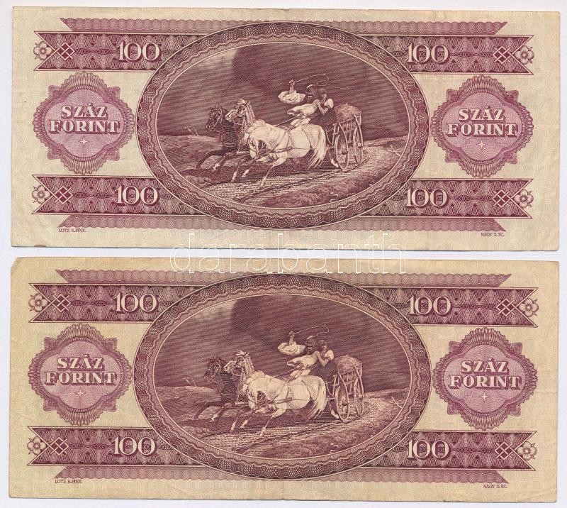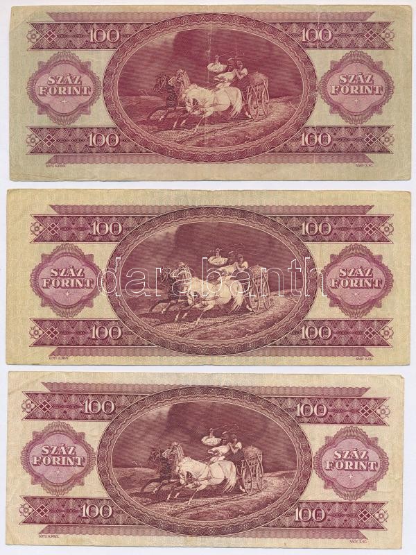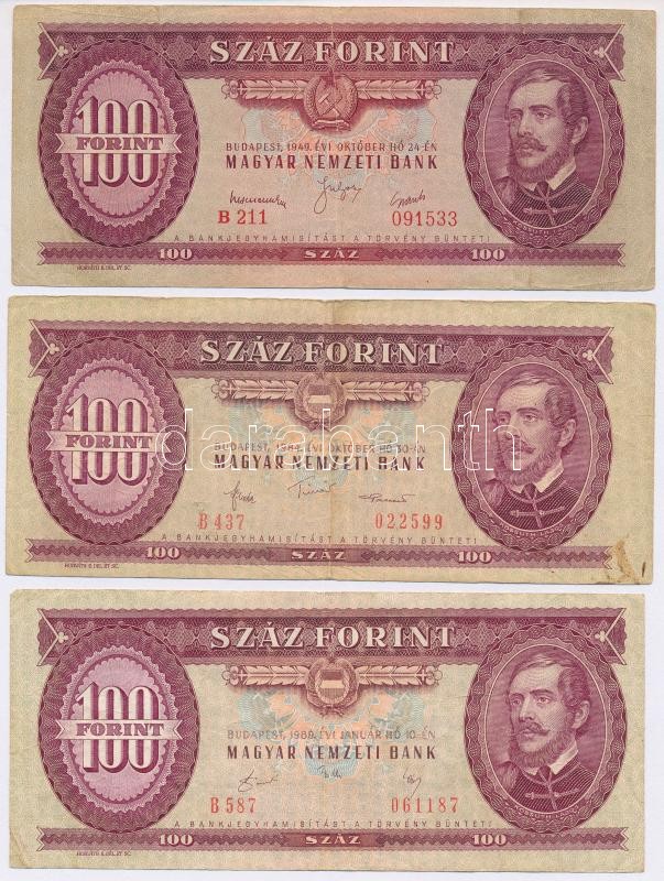 1949-1993. 100Ft (5xklf) T:III,III- https://www.darabanth.com/hu/343-Gyorsarveres/343.0/Numizmatika/Magyar-bankjegyek~1500007/1949-1993-100Ft-5xklf-TIII-III-~II1935222