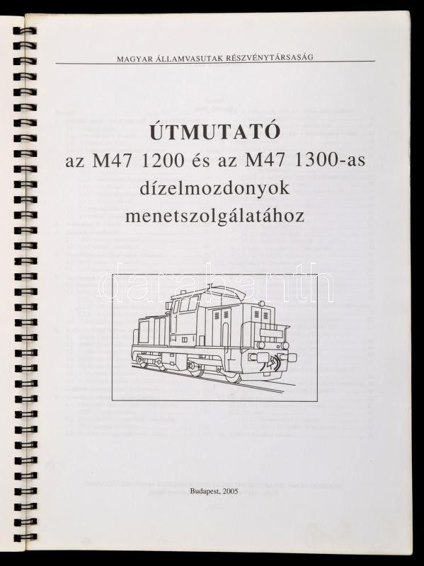Horváth Péter: Útmutató az M47 1200 és M47 1300-as dízelmozdonyok menetszolgálatához. Szerk.: Mezei István. Bp., 2005, MÁV Zrt., 68 p. Kiadói spirál-kötés, jó állapotban.
