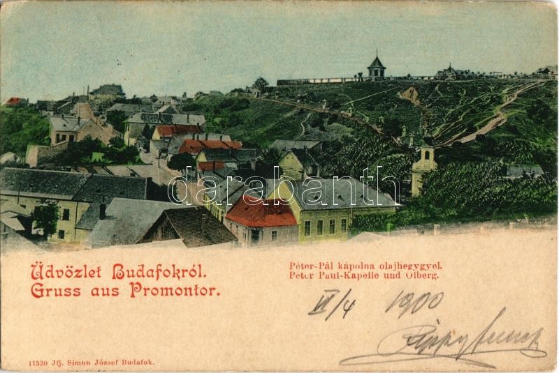 1900 Budapest XXII. Budafok, Péter Pál kápolna az Olajheggyel. Ifj. Si... https://www.darabanth.com/hu/345-Gyorsarveres/345.0/Kepeslapok/Magyarorszag~2000004/1900-Budapest-XXII-Budafok-Peter-Pal-kapolna-az-Olajheggyel-Ifj-Simon-Jozsef-kiadasa~II1955545