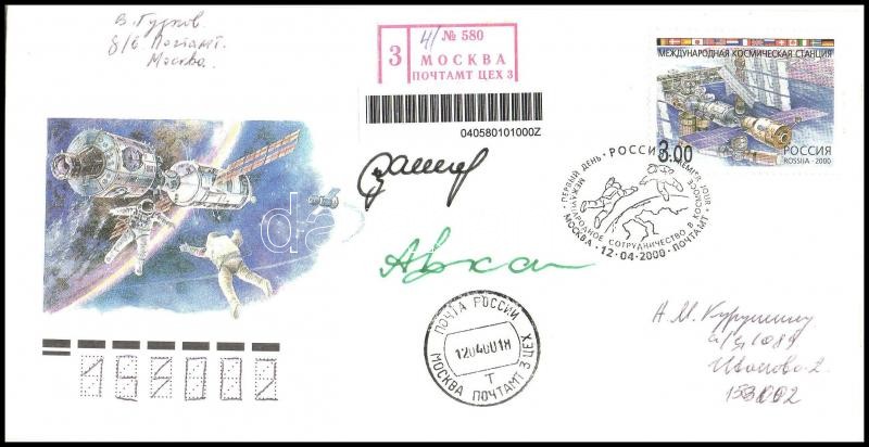 Signatures of Aleksandr Kaleri (1956- ), Sergei Zalyotin (1962- ) Russian astronauts on envelope